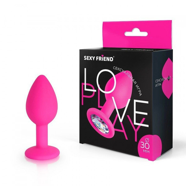 Пробка с белым кристаллом "Sexy Friend" фуксия, S