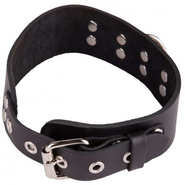 Выполнен из натуральной кожи в лаконичном черном цвете. Регулируемый ремень позволяет добиться идеальной фиксации. А, металлическое кольцо может быть использовано для крепления различных БДСМ аксессуаров!