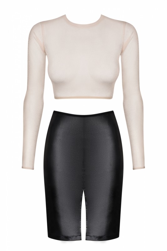 топ с длинным рукавом укороченный, юбка-карандаш из материала Wetlook, р-р 46-48